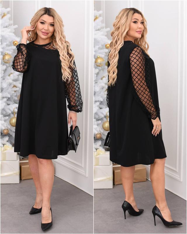 Тканина:креп дайвінг+ сітка ✅Кольори: чорний,т.зелений, марсала ✅Розміри:48-50,52-54,56-58 Довжина рукава - 63 см. Заміри: ✅48-50 Об'єм грудей -108 см. Об’єм талії - 124 см. Довжина -95 см. ✅52-54 Об'єм грудей -116 см. Об’єм талії-132 см. Довжина - 97 см. ✅56-58 Об'єм грудей - 124 см. Об’єм талії-140 см. Довжина - 98 см. FC