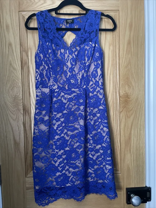 Платье oasis синее с кружевом гипюром , размер 46 для свадьбы, вечеринки