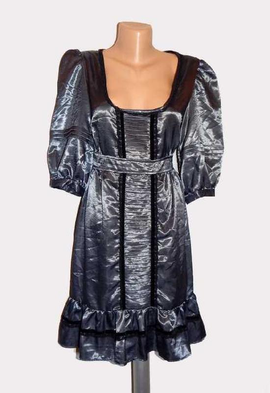 Шикарна сукня. Темно сірий колір з блиском. Вшитий пояс. Оборки.