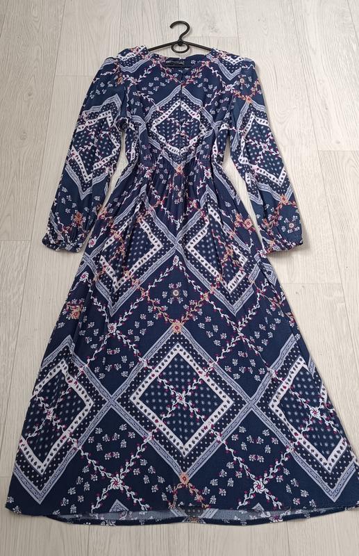 Синее приталенное женское платье marks Spenser