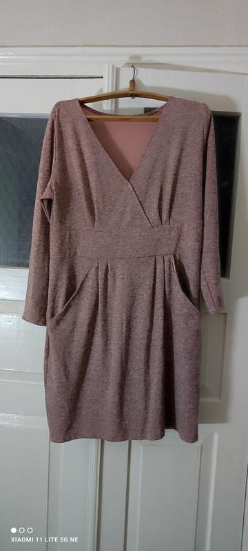 Платье женское, силуэт, подчеркивающий фигуру и бюст. Ткань ангора меланж, не мнется, долговечна. Длина 102, пояс 51, бедра 60, грудь 57. Имеет складочки и карманы