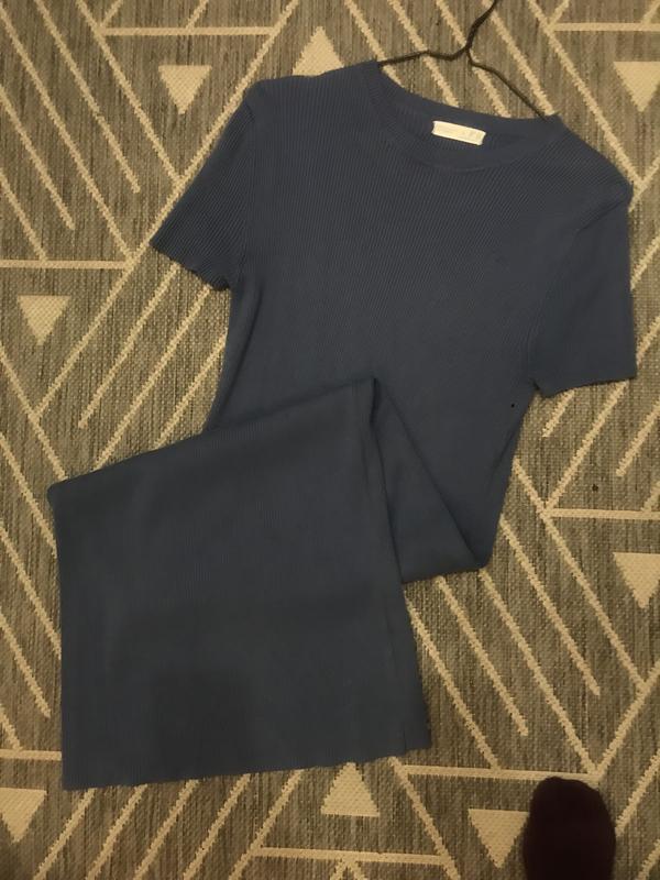 Трикотажна сукня міді на короткий рукав у стильному кольорі деніму у ідеальному стані. Розмір вказано. L , ідеально на М Виробництво Бангладеш Мукня ідеально міксується із об‘мними світерами