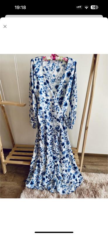 Плаття sinsay на запах xl синьо-біле в квіти віскоза