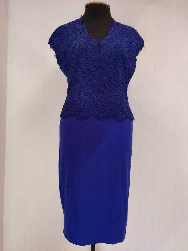Верхняя часть платья из кружева на подкладке, нижняя часть из трикотажа. Полуобъем по груди 47-49 см Полуобъем по талии 38-42 см Полуобъем по бедрам 47-56 см Длина 101 см
