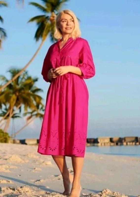 Платье миди из чистого хлопка фуксия от marks and spenser