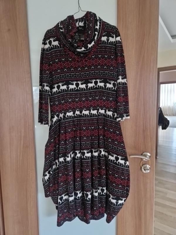 Платье с новогодним принтом очень красивое, (-приталенное, юбка-в складку (эффектный крой...