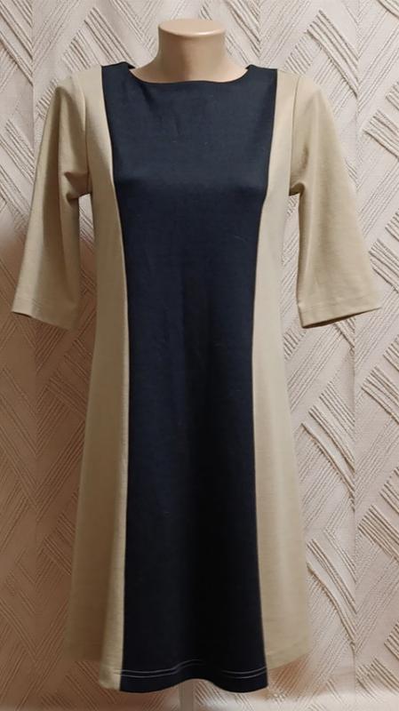 распродаж 2 вещи приобретаете, получаете подарок Это платье-футляр или платье с цветными блоками (color block), которое сочетает два контрастных цвета: бежевый и черный Основные характеристики: Крой: полуприталенный силуэт подчеркнут вертикальными контрастными вставками, визуально вытягивающими силуэт. Цвета: Центральная панель выполнена в темном цвете, а боковые вставки и рукава – в светлом бежевом оттенке. Детали: Платье имеет округлый вырез горловины "лодочка" и рукава длиной три четверти. Стиль: Благодаря классическому сочетанию цветов и строгому крою, платье идеально подходит как для делового, офисного стиля, так и для торжественных событий или коктейльных вечеринок. плече 8 см рукав 35 см длина 90 см ног 44 см нот41 см бедра свободно покупаете то что на фото без претензий перед покупкой все хорошо замеряйте, обмену и возврату нет доставка НП и УП после оплаты на карту (в назначениях плате пишите возвращение средств за приемную вещь) или безопасная оплата