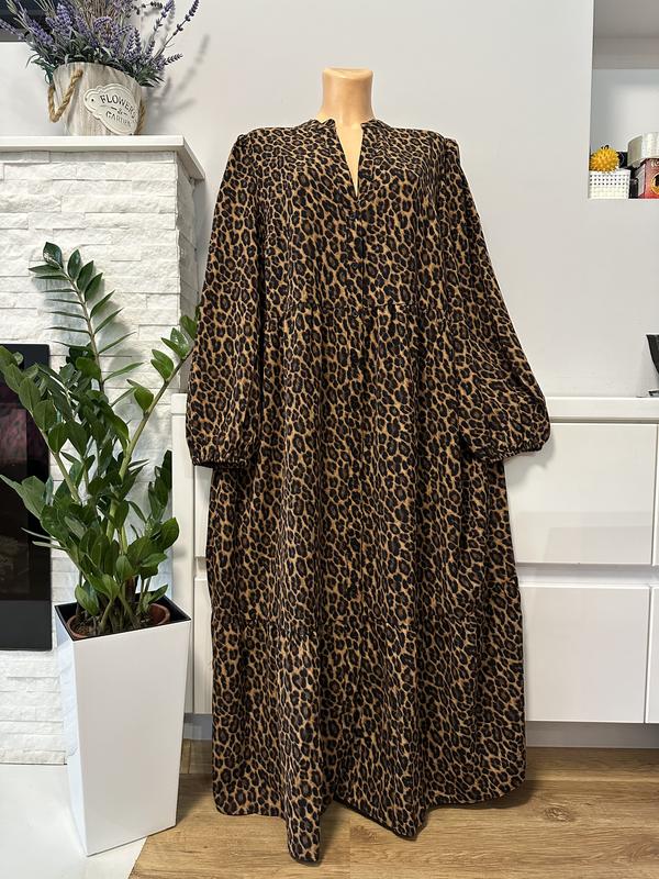 Нереально красива сукня -сорочка в леопринт Вільного фасону Якість тканина чудова Р.16,довжина 130,Пог 56,бедра вільні