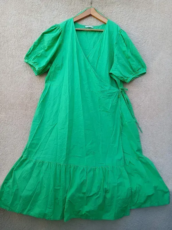 Суперское платье на запах, большой размер, хлопок, наличие новой вещи ПО груди 75-80, ПО бедра 84, длина 129 Замеры отличия половина