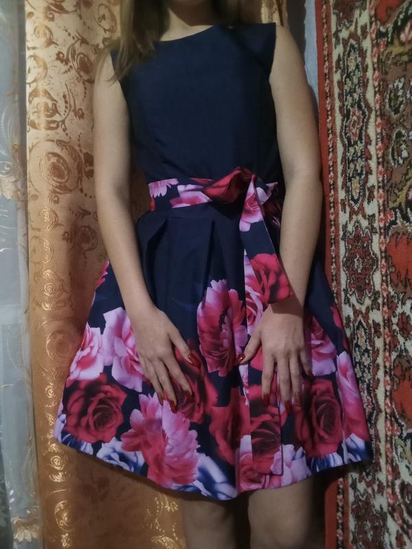 Эффектное женственное платье в темно-синем цвете с пышной цветочной юбкой 🌹 Очень красиво смотрится на фигуре, пояс с бантом делает талию более выразительной. ✨ Идеальный вариант на праздник, вечеринку или фотосессию ✨ Яркий принт, приятная ткань ✨ Состояние новое 📏 Размер: s 📐 Длина: выше колена 📦 Открытка Новой почтой / Укр-почтой