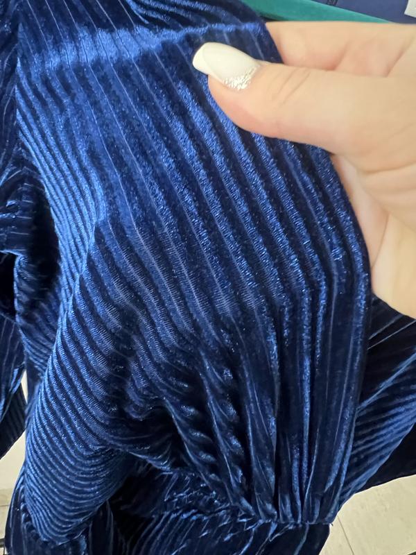 Ефектна оксамитова сукня глибокого синього кольору. Красива плісирована тканина з благородним переливом, модель на запах — чудово підкреслює фігуру та візуально струнить. 🔹 Бренд: FLOYO 🔹 Розмір: вкажи з бірки (підійде на S–M) 🔹 Довжина: міді 🔹 Застібка: блискавка ззаду 🔹 Стан: відмінний, без дефектів 🔹 Підійде для свята, корпоративу, Нового року, вечірнього виходу