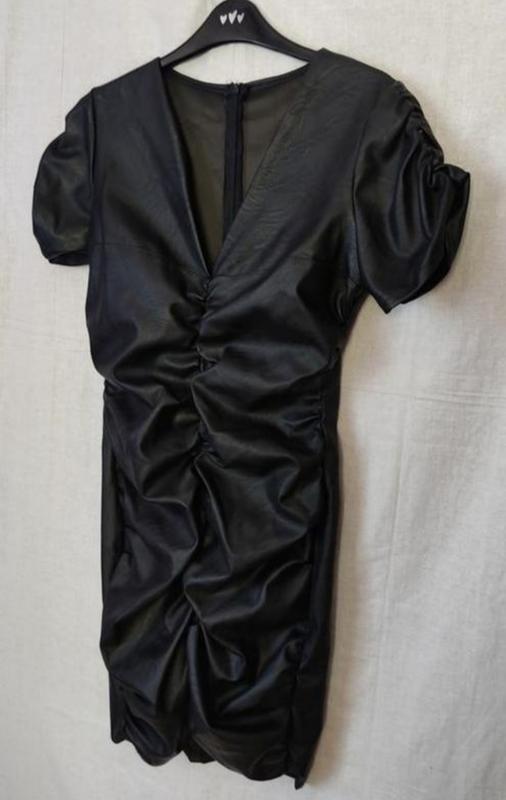 Платье из экокожи с дрaпировкой из италии роз. 46
