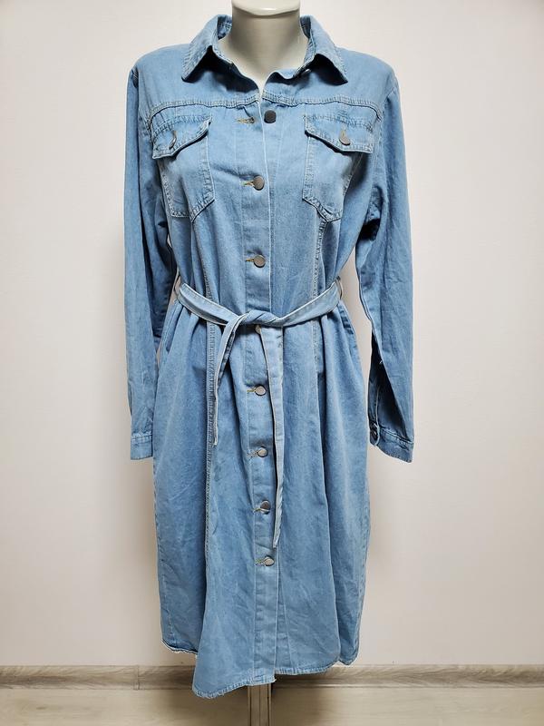 Ткань джинс мягкая, не тянется. Пуговицы растекаются до самого низа. ПОГ 56, ПОТ 54, ПОБ 69, плечи 45, рукав 63, длина 109 см.