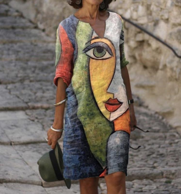 Сукня в стилі Пабло Пикассо з обличчям розмір XL у відмінному стані яскрава та стильна. #410