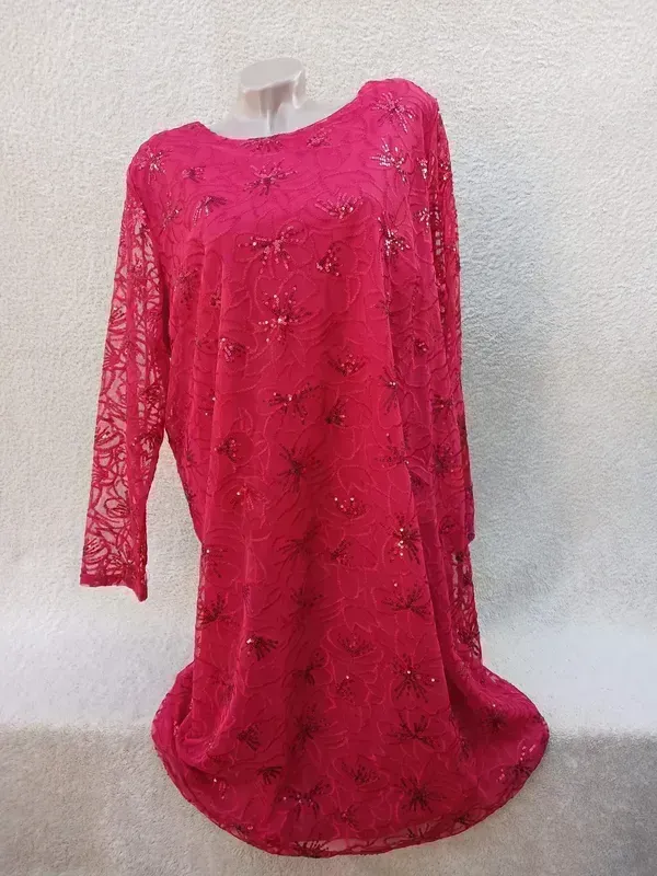 Красное гипюровое платье расшито паетками,есть трикотажный подклад,состояние идеал ПО груди 65-70, ПО бедра 65-70, рукав 61, длина 107 Замeры вeздe половина