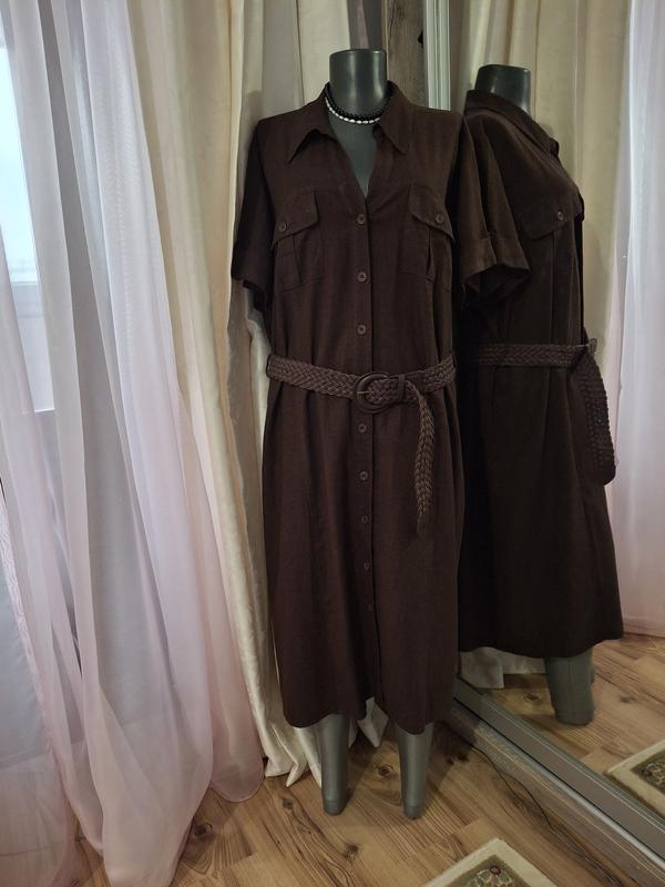 Вискозно-льняное с пояском платье 👗 рубашка большого размера