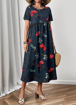 Размер М, свободного кроя, длина 120, полуобхват груди 48, полуобхват талии 36 - 48 (резинка), полуобхват бедер 70, плечи 42.