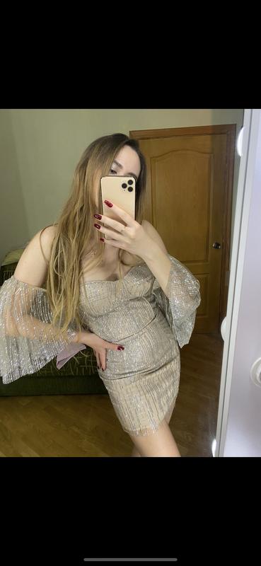 Сукню вдягала 1 раз на пару годин, стан ідеальний 😍 Дуже гарно блищить. Розмір S. Купувала за 4000 грн. Зараз в Гепюрі аналогічні сукні від 5500 грн. Якщо потрібно більше фото - пишіть - усе надішлю.