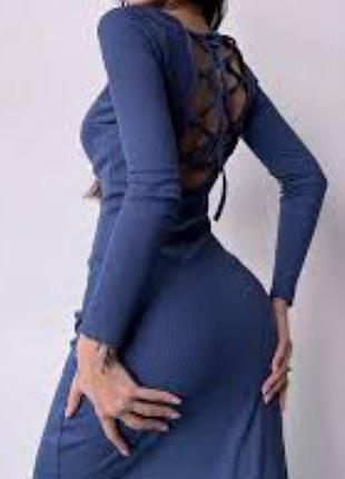 Платье женское миди в рубчик на длинный рукав на завязках на спине полхват груди 52-62 рукав 65 полхват бедер 58-70 длина 133 ткань тянется