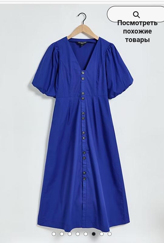 платье вау! цвет как на модели насыщенный синий, хрустящий катон не просвечивает, рукава буфы, интересное расположение пуговиц. очень женское, ничего лишнего., состояние идеальный.е карманы замеры длина 130, под рукавом 53, талия 44; бедра 67, далее свободно, расклешенная, между плечами 40, рукав пышный 30.вырез спереди 25
