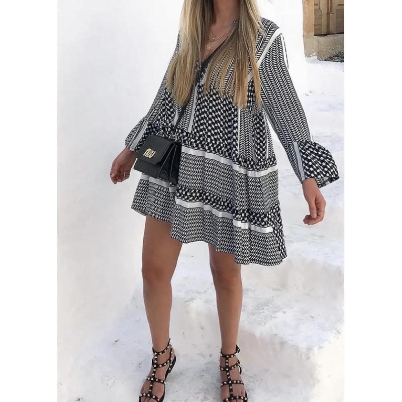 Платье черно белых цветов. размер 46-48 свободно