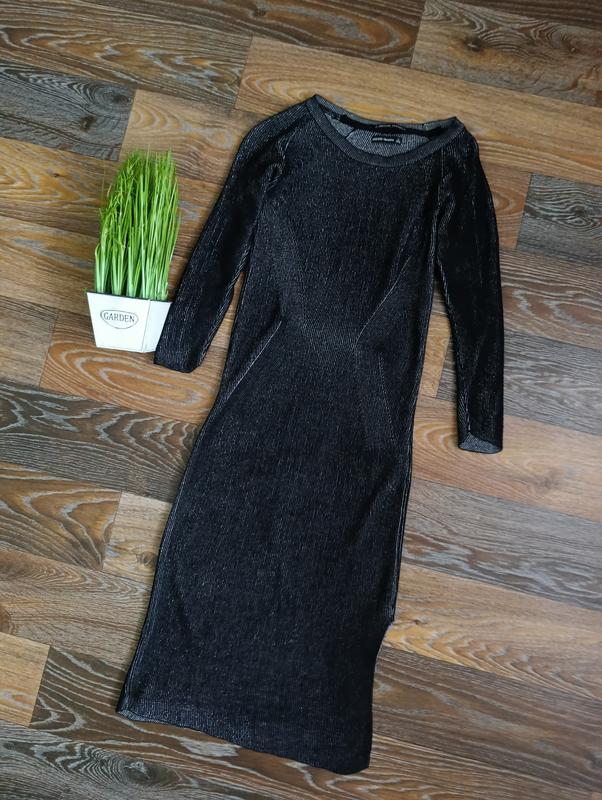 Хорошее платье от Bershka с добавлением люрексной нити. Камера передает очень сильный блеск, в жизни едва заметен. Сбоку есть разрез.Стан идеален. Размер указан S, можно небольшая М