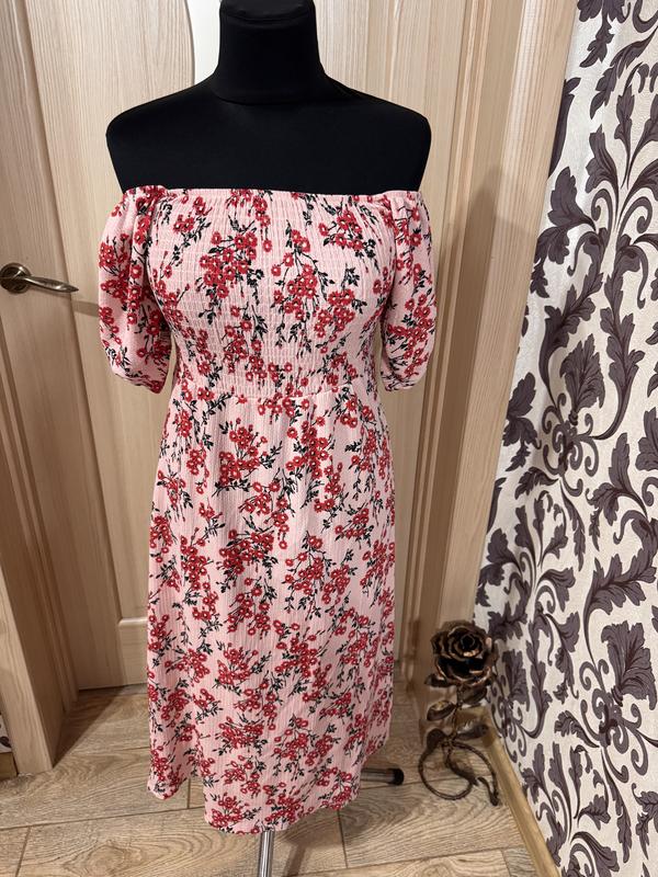 Сукня літня з обʼємними рукавами рукавами,довжина100см,,по грудях тягнеться до 48см в пооуобʼємі,по талії тягнеться до 43см,бедра 52см