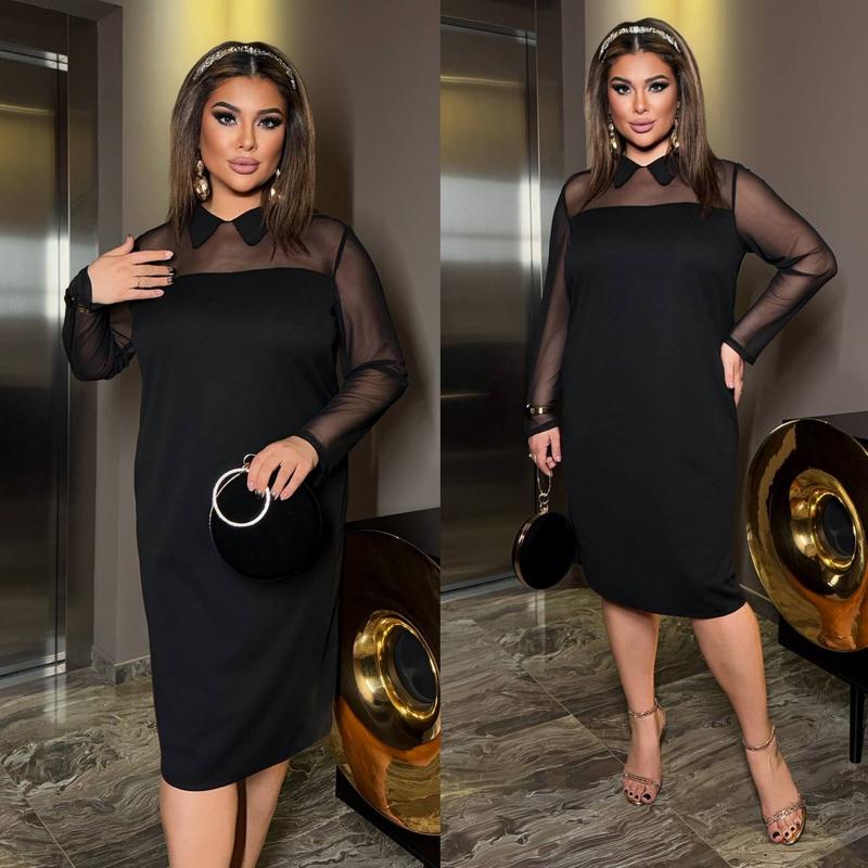 Розміри : 50-52 , 54-56 , 58-62 Тканина : якісна сітка + креп дайвінг Кольори : чорний ,шоколад Елегантність, що говорить сама за себе Відкрийте для себе сукню, створену для особливих моментів. Ніжні напівпрозорі рукави, витончений комір , бездоганний силует ,та грайливий розріз роблять цей образ ідеальним вибором для вечірніх виходів, романтичних зустрічей і стильних подій. Легкість і добра розтяжність тканини Комфортна посадка Універсальний чорний і трендовий шоколадний кольорі Акцентні аксесуари — і ви неперевершені Створіть ефектний образ, що підкреслить вашу впевненість і жіночність. Ваш ідеальний вечір починається з правильної сукні. Виміри : 50 - 52 , 54 - 56 , 58 - 62 ОГ 108 / 120 / 132 см ОС 114 / 126 / 138 см Довжина рукава 62 /63 / 64 см Довжина 101 / 103 / 105 см Тканина має добру розтяжність ~6-8 см ns