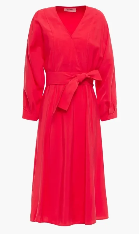 Платье миди-платье Ba&Sh NWT с V-образным вырезом Cauka, размер 2 - М. Скрытая застежка на молнию сбоку. Пояс на талии. Плечевые накладки. Прикрепленный пояс с завязкой. Рукава три четверти длиной с манжетами на одной пуговице. V-образный вырез, перекрестный вырез. 86% вискоза, 14% полиэстер. Цвет: Вермейл