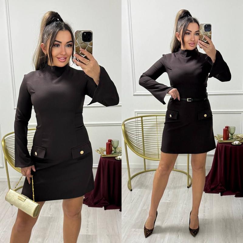 МА 04.01.6 ❤️Мод 14/ мр220>04<104 🟣Чарівна жіноча сукня з паском Розміри: 42-46, 48-50, 52-54, 56-58 Тканина: креп костюмка Кольори: чорний, шоколад Пасок в комплекті, на спинці блискавка. Сукня декорована гарними гудзиками золотого кольору Якість чудова 📌ВИМІРИ: 42-46 ОГ 90 ОТ 82 ОС 102 рукав від плечового шву 60, довжина виробу 90 48-50 ОГ 98 ОТ 90 ОС 110, рукав від плечового шву 60, довжина виробу 91 52-54 ОГ 106 ОТ 98 ОС 118, рукав від плечового шву 61, довжина виробу 92 56-58 ОГ 112 ОТ 106 ОС 118, рукав від плечового шву 62, довжина виробу 93 #наложка