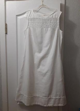Красива літня сукня зі вставкою мережива, без рукавів, з внутрішніми боковими кишенями кишенями, 100% бавовна, А-силует, на спині-"капелька" на гудзику. Заміри-на фото
