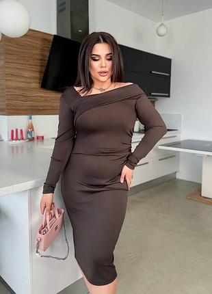 Мод: 194 Розміри: 48-50, 52-54. Стильний вибір для будь-якого заходу: Параметри: ОГ сукні/ОС: 48-50:94-118 /98-118 52-54: 102-126/ 104-126 Довжина сукні / довжина рукава, від плеча: 48-50: 110/ 59 52-64: 110 / 60 -Тканина: дайвінг, гарно тягнеться. Кольори: -чорний; -шоколадний.