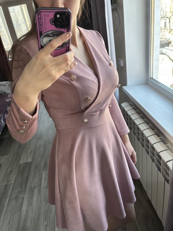 Чудова сукня на дівчину, розміром S, мої параметри ОГ 95 см, ОТ 69 см, ОБ 95 см. Можна і на менші груди. Головне в талії влізти, бо на спині замочок. Бедра можуть бути і менші, і більші. Стан супер, бо вдягала один раз на свято. Тканина типу замші (не сильно в цьому розбираюсь)