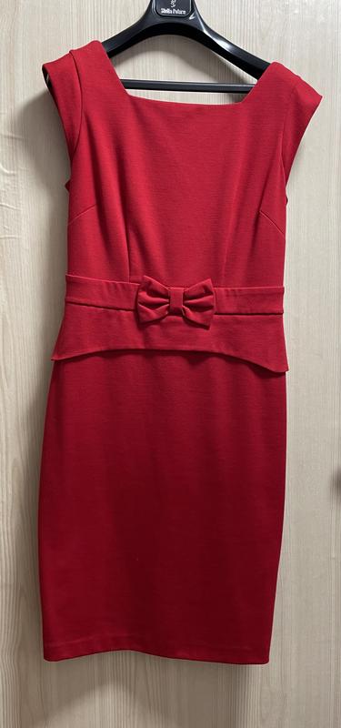 Червона жіноча сукня, розмір 46-48 (12/40) Щільний трикотаж гарної якості, попереду баска. Дефектів немає