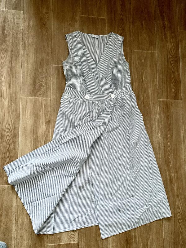 Тендітна брендова сукня з бавовни на запах, голуба смужка, срібний люрекс, VOVK Заміри: Пог 46; Пот 43; Поб 50; довжина 114; плечі 38
