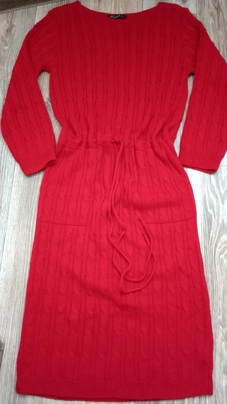 Красное трикотажное платье от бренда Xiss с карманами,в поясе кульска замеры на фото