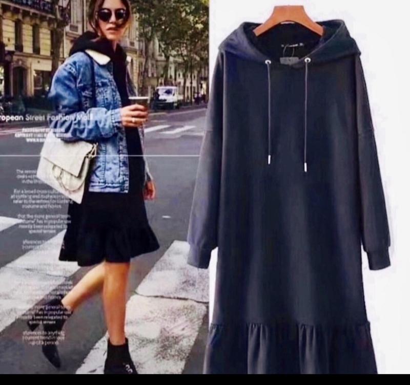 Сукня- худі Колір чорний Капюшон Довгий рукав Утеплене