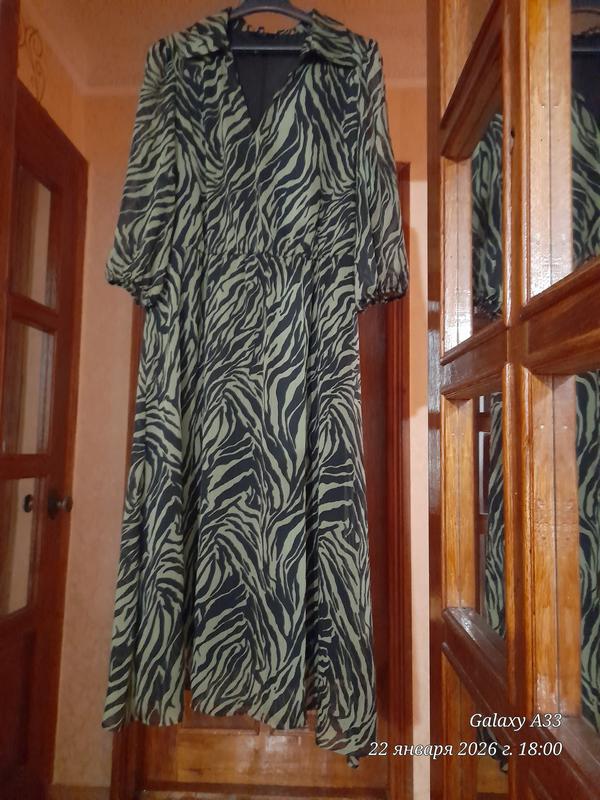 Шифоновое платье ,длинна миди,цвет микс хакки +чёрный, на подкладе))) Талия на резинке ,V образный вырез, рукав 3/4 .Замеры изделия пог 56/57,длинна 122см,пот42(+7см) резинка