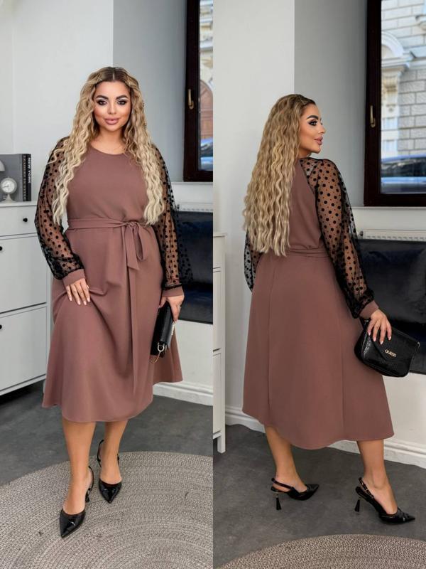 Платье свободного фасона💋 Модель 06Мa2d ▪️Цена: 880грн ▪️Цвета: бордо, мокко, черный, изумруд, розовый ▪️Ткань: креп дайвинг, рукава сетка ▪️Размеры: 48-50, 52-54, 56-58, 60-62 Тканина тягнеться (2-5см) ✔️Замеры по изделию: 48-50 Ог -112см От -104см Ос -130см Длина платья -112см Длина рукава -66см 52-54 Ог -122см От -116см Ос -138см Длина платья -112см Длина рукава -66см 56-58 Ог -132см От -122см Ос -145см Длина платья -112см Длина рукава -66см 60-62 Ог -142см От -130см Ос -152см Длина платья -112см Длина рукава -66см ‼️Модель на фото в 48-50 параметри 110-88-111