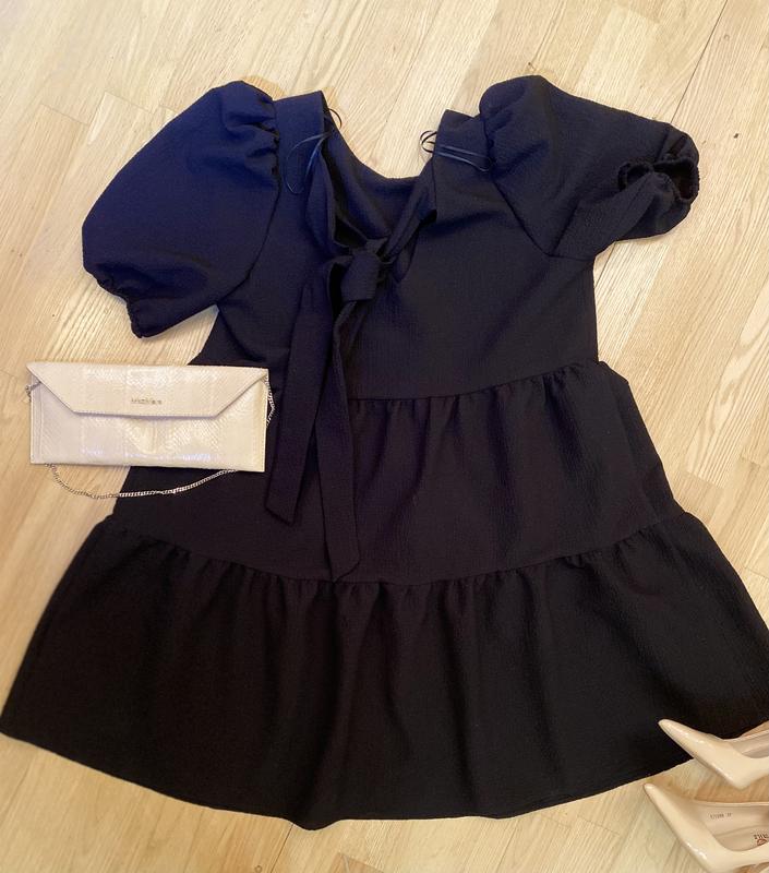Дуже гарна сукня на розмір від S до XL . Тканина не мнеться взагалі, гарно сідає по фігурі.