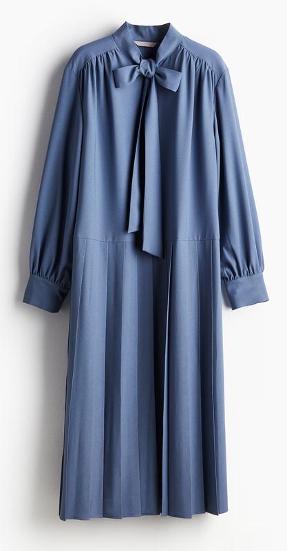 Платье H&M. Размер XS-S. Н бирке указан XS, можно на S. Свободное. Благородный серо-голубой цвет. С биркой. Мягкое твиловое платье миди с воротником-стойкой, длинными завязками для банта и застежкой на пуговицы спереди. Свободный крой, длинные рукава-фонарики с манжетами на пуговицах. Складки на юбке создают струящийся силуэт. Без подкладки. Описание: Благородный серо-голубой. Модель: Приятный на ощупь и к телу полиэстер..