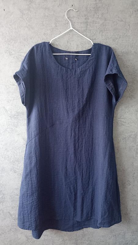 Пропоную синю базову сукню Практичный фасон. Спущенный рукав кимоно,е боковые карманы.Созвез Длина около +- колен Состояние очень хорошее.Без дефектов Бирки срезаны Состав 75% район (материал напоминает вискозы) 25% нейлон Тканина практично не мнеться