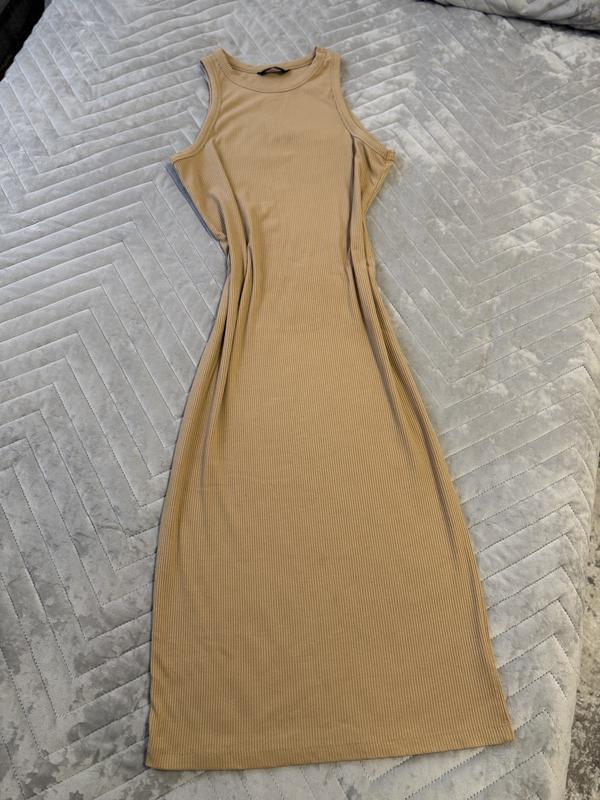 Платье рубчик-Л.В очень хорошем состоянии,без нюансев.Тянется очень хорошо.Приятная к телу ткань.Длина-122,пог-45(тянется спокойно до 57),пот-40(тянется до 50),поб-46(тянется до 55)