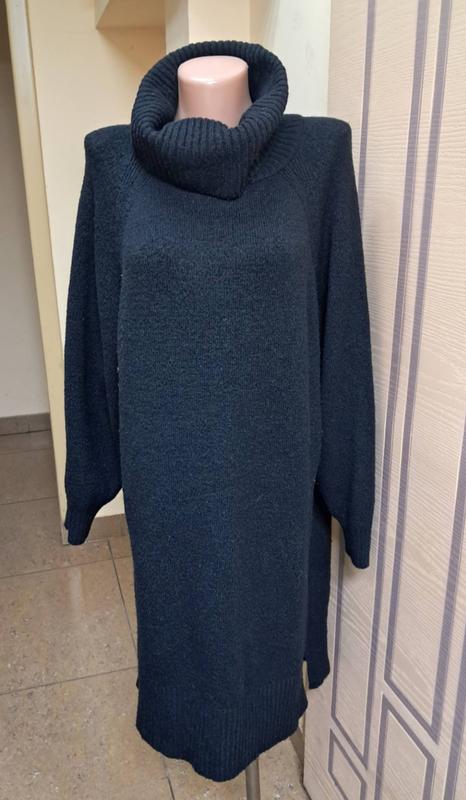Теплое платье имеет небольшие боковые разрезы.Длина 100см,ОГ 120см.