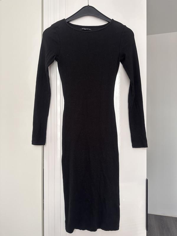 Чорна приталена сукня міді. Зірвала етикетку, але ні разу не одягла, нове. Базова чорна сукня приталеного фасону. Добре тягнеться, підкреслює фігуру. Довгий рукав, круглий виріз. Універсальна — підійде як на кожен день, так і на вихід.