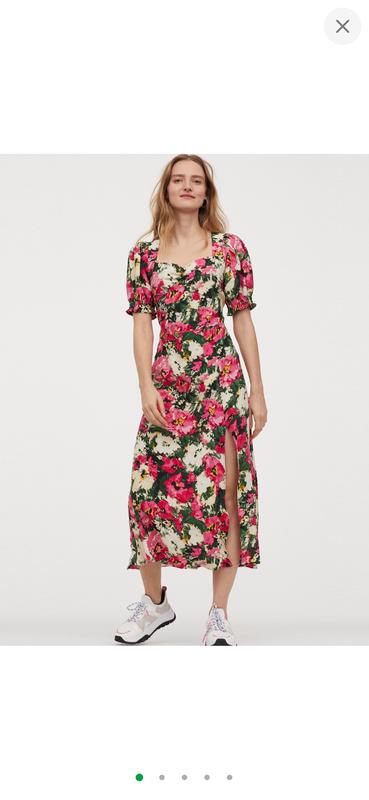 Платье яркое, спереди есть разрез недостатков нет, длина 121см, полуобхват талии 41см, груди 46см, 100%вискоза, цвета не такие яркие как на фото.