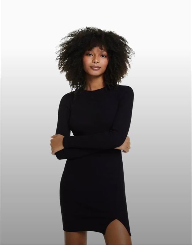 Облегающие платье с разрезом в рубчик бренд Bershka. Состояние новой вещи. Размер указан M возможно подойдет на S.