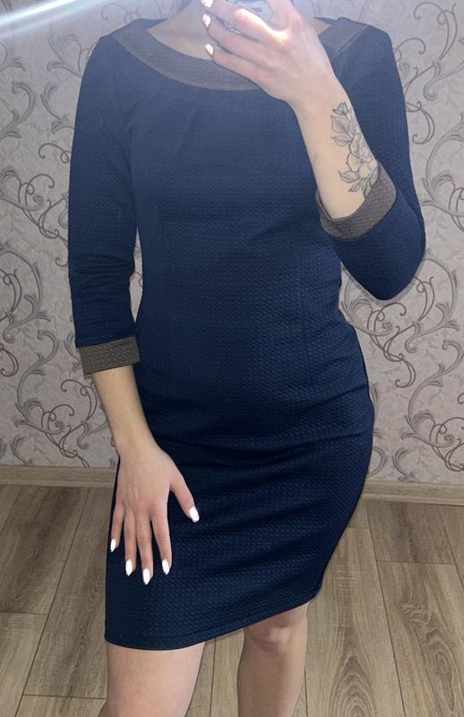 Сукня жіноча міні темно-синього кольору з коричневими деталями, напівприталена, рукав 3/4, демісезон, розмір S