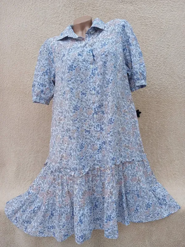Тонкое интересное платье туника,хлопок,есть пятнышко возле ворота,думаю отстирается,в остальном состояние идеал ПО груди 58, ПО бедра 67, длина 93 Замeры вeздe половина