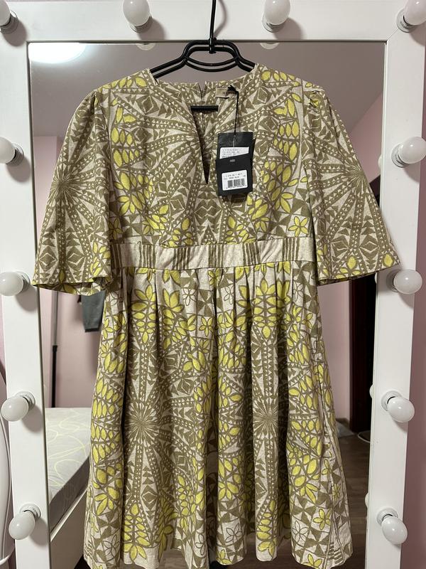 Хлопкова сукня- міді із 100% хлопку у відмінному стані, нова з ярликом. Сток. Розмір М: ширина у плечах 40, довжина рукава 36, ширина у грудях 50, довжина по спинці 91. Позаду молнія, е кармани по бокам.